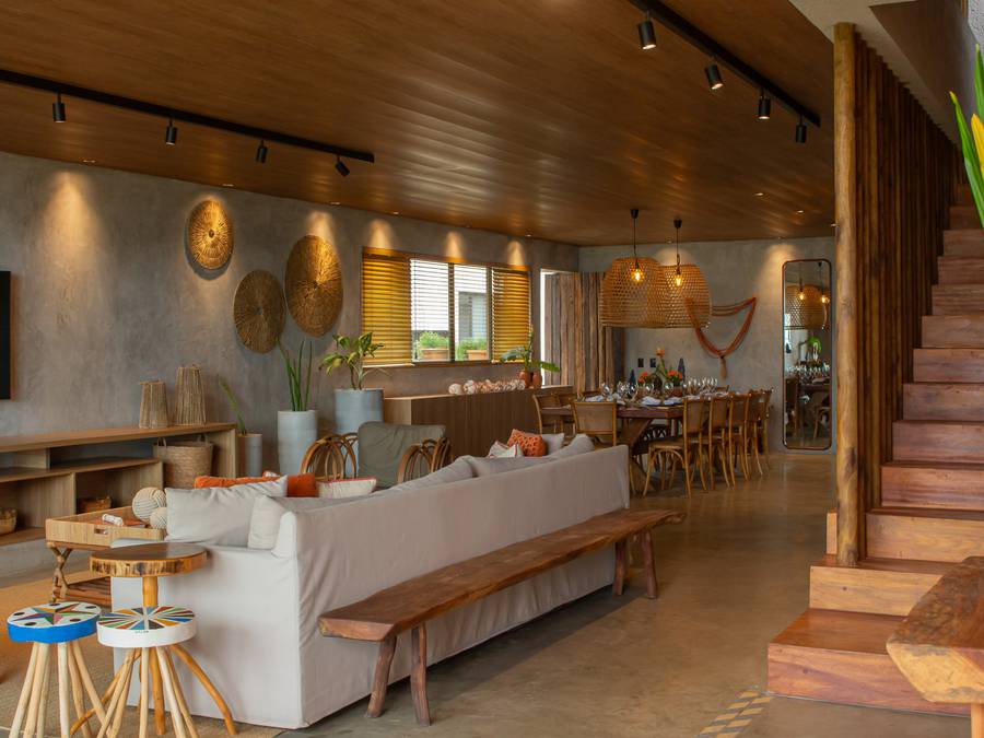 Cada casa acomoda 14 hóspedes e possui 05 suítes, sendo 01 no térreo acessível e 04 no pavimento superior com 02 frente mar e 02 com vista lateral, além de sala de estar, jantar, cozinha e espaço de lazer privativo.